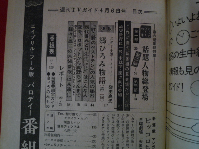 TVガイド ¥4,400円(税込) 東京ニュース社 評価:B A5版 4月新番組総特集号 ナンバー549 関東圏の発売品 状態はそこそこ綺麗です。 書籍情報その他書籍 レーベル TVガイド 作者名 全巻数 1冊 出版年月 S48/4月6日号 絶版漫画専門店オケフサ 住 所 〒598-0053 大阪府泉佐野市大宮町13-1 営業時間 9:00 ~ 17:30 ※12:00~12:30は外出中 定 休 日 木曜日 電話でお問い合わせ072-462-1277 メールでお問い合わせinfo@okefusa.com